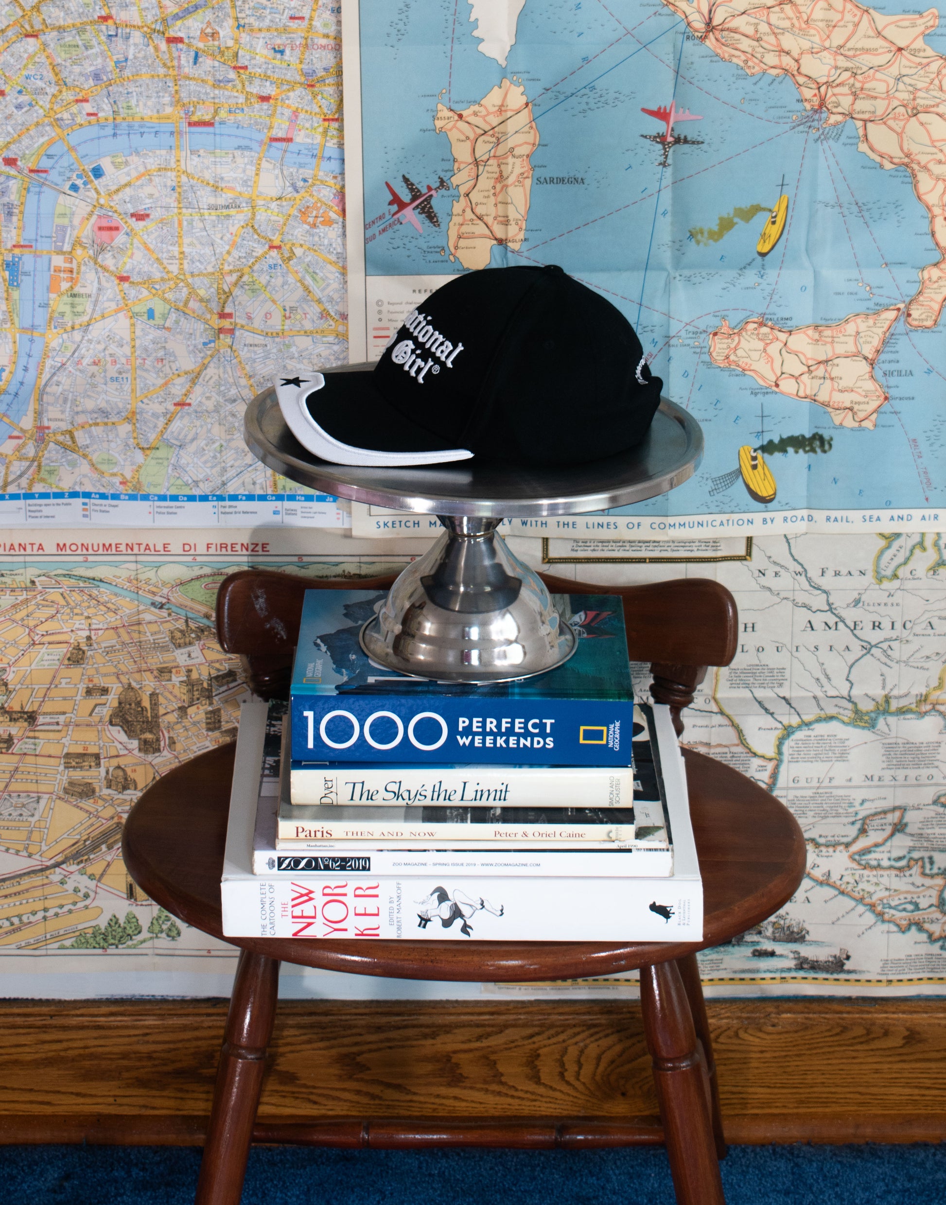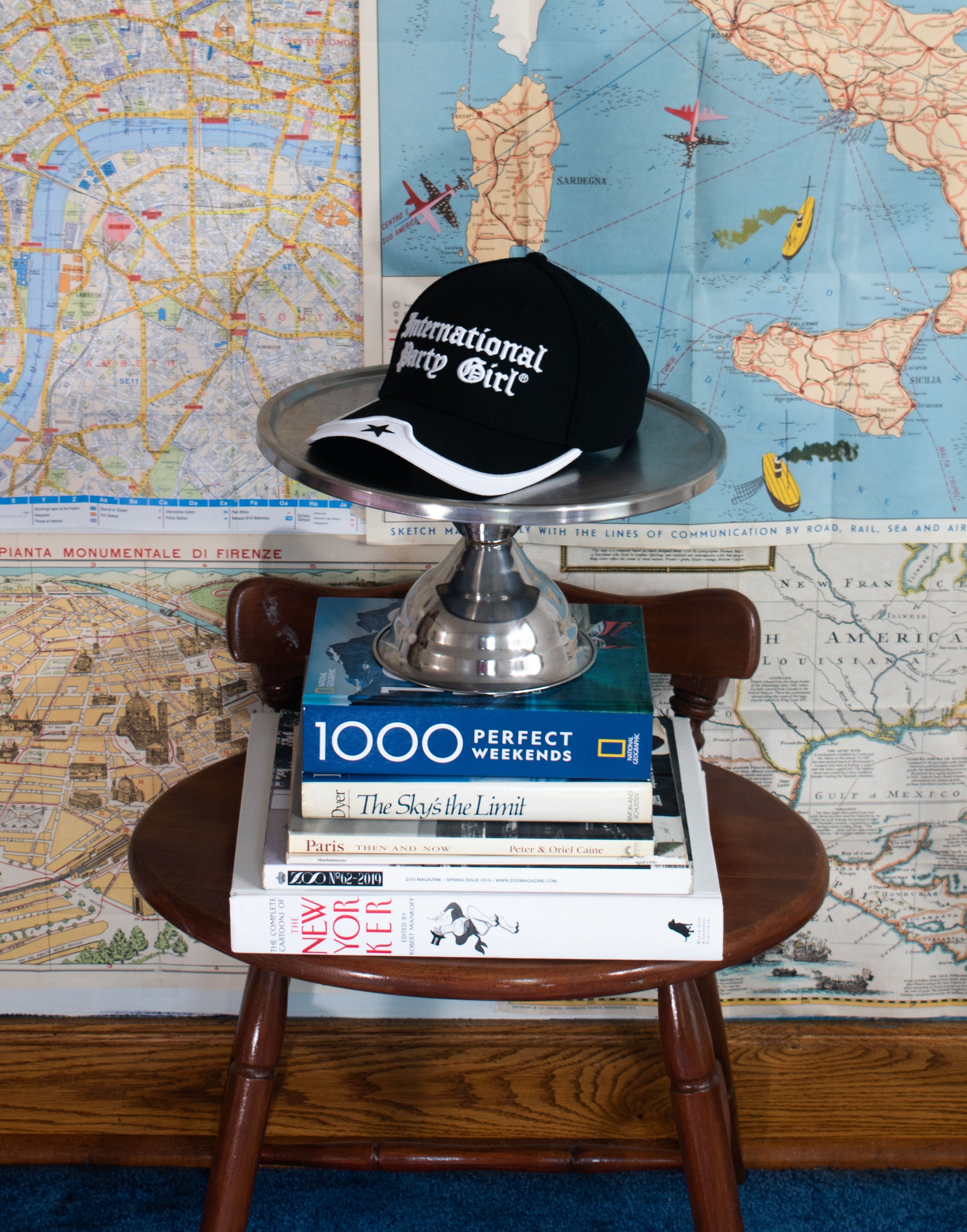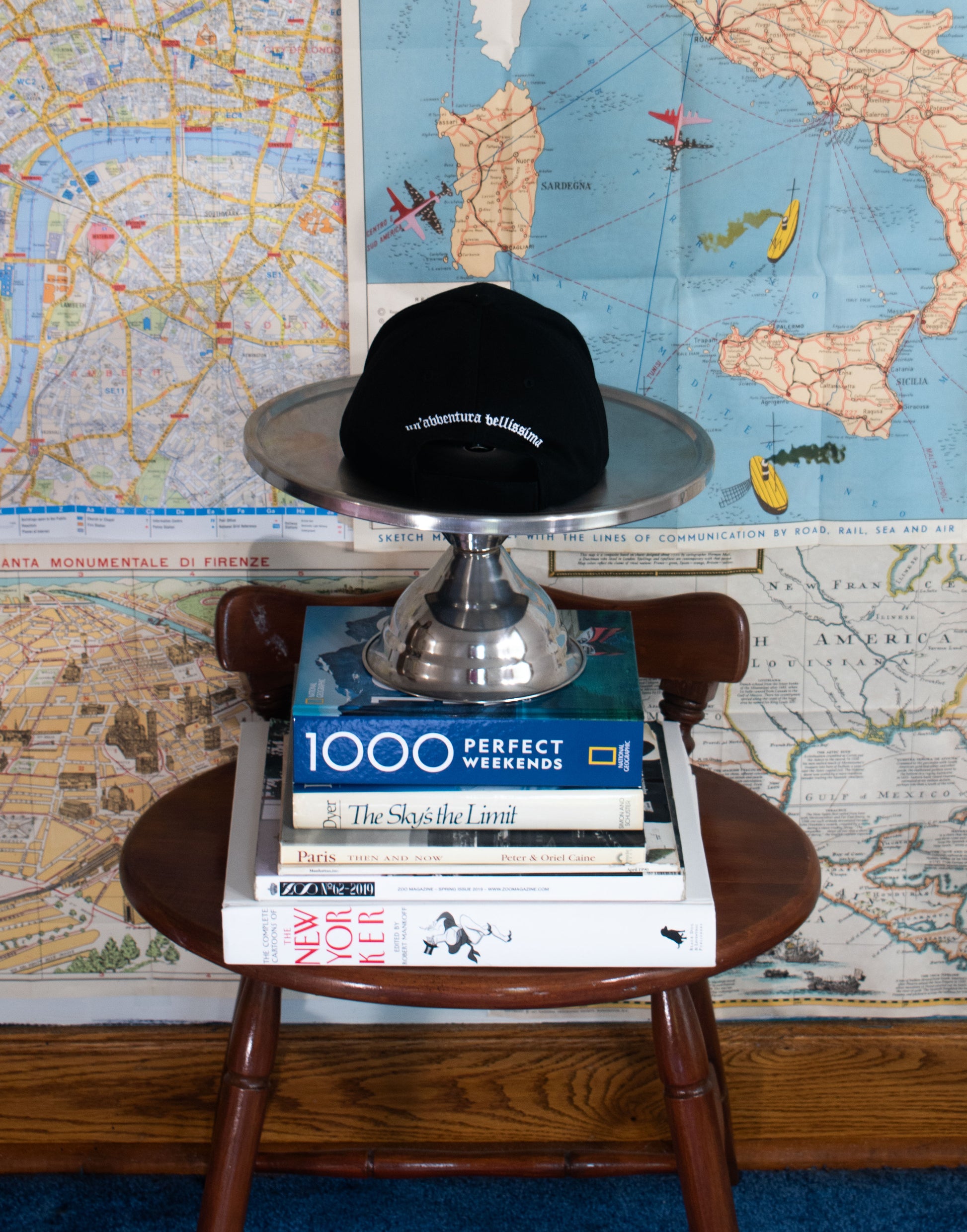 Featuring a custom designed cap with an embroidered star with curved brim, raised international party girl embroidered logo, velcro closure with "a beautiful adventure" in Italian on the back.
