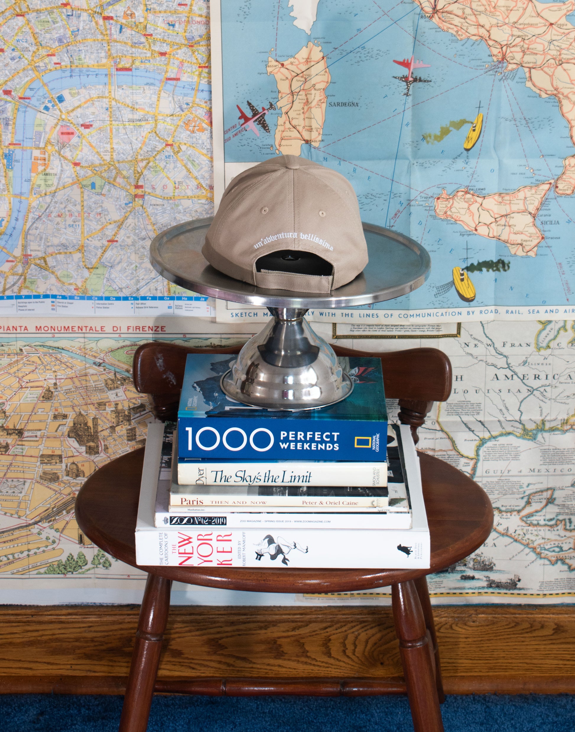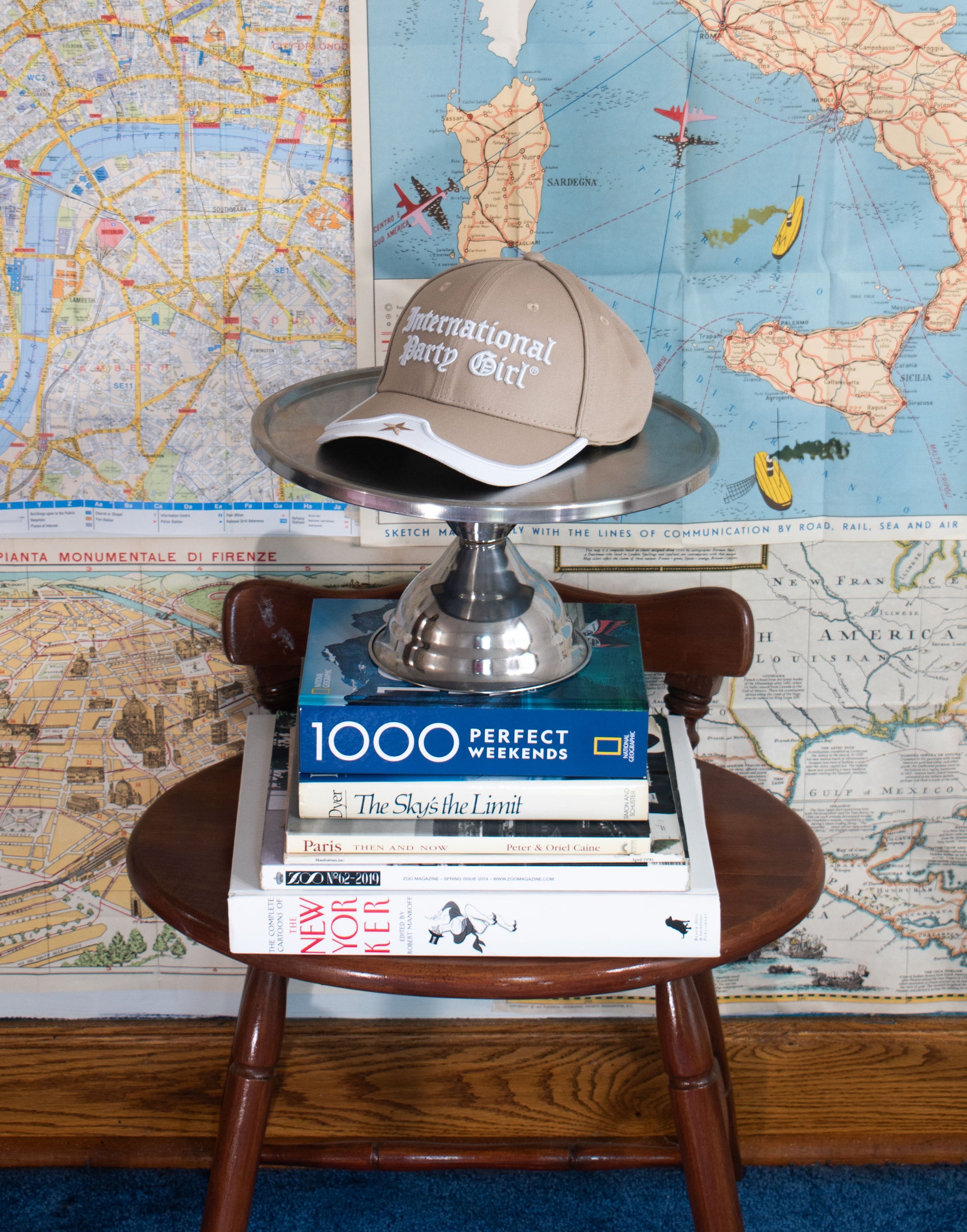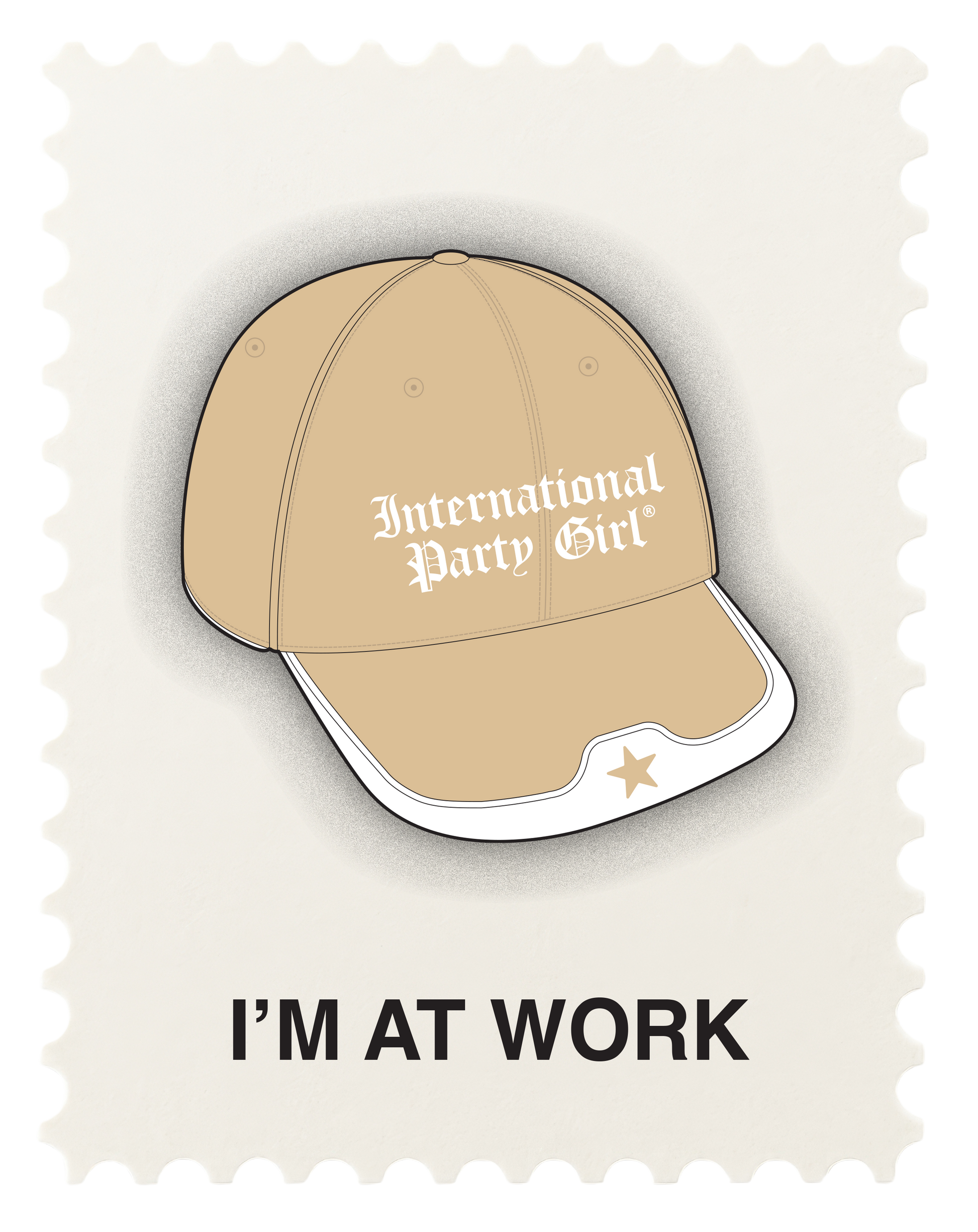 Featuring a custom designed cap with an embroidered star with curved brim, raised international party girl embroidered logo, velcro closure with "a beautiful adventure" in Italian on the back.