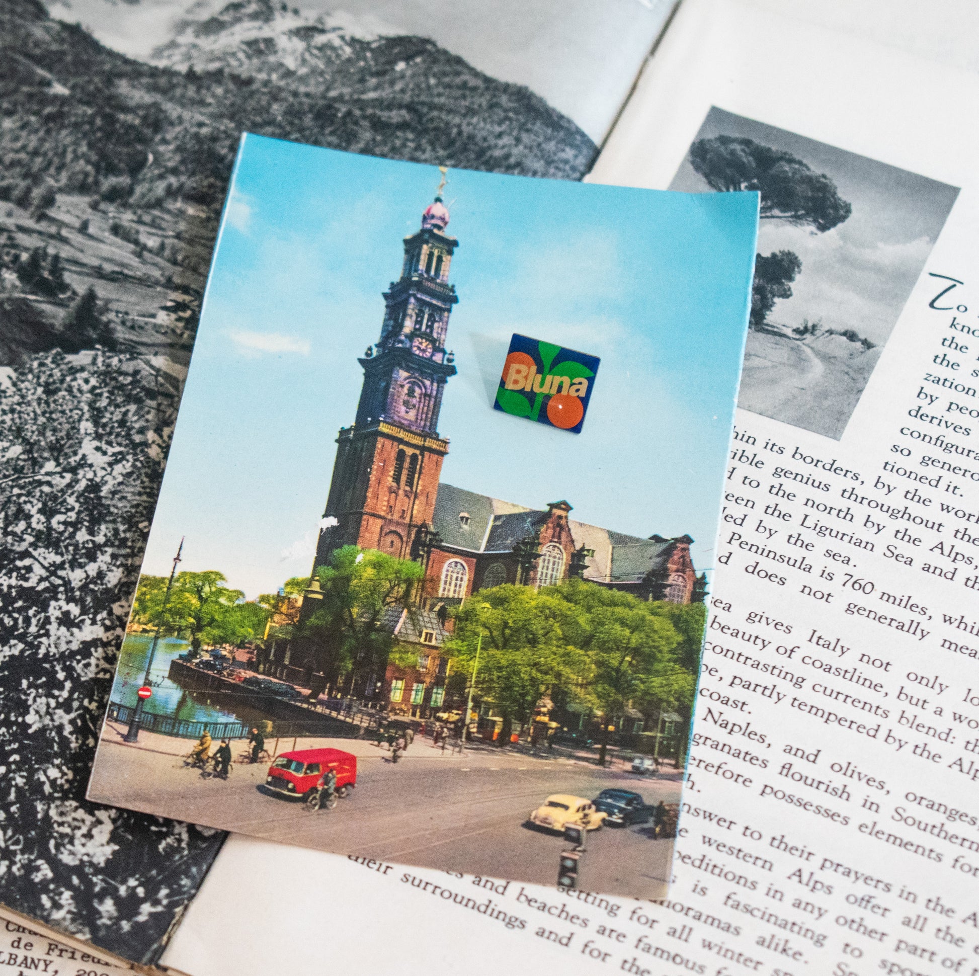 Bluna, crafted in 1952, is a German orange soda from the makers of Afri-Cola. Loved for its subtly sweet and fruity flavor, it’s the perfect refreshing treat for sunny days. Famous for the cheeky slogan, "Sind wir nicht alle ein bisschen Bluna?"—which playfully asks, "Aren't we all a little Bluna?"—this vintage pin captures the fun spirit of this classic drink.
