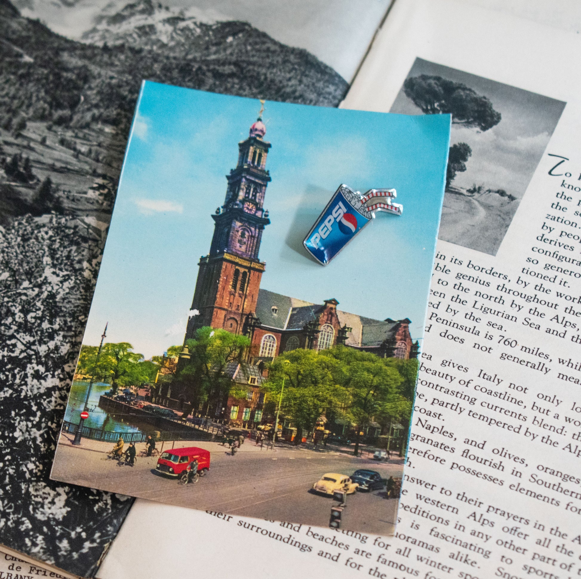 Every drink deserves a straw, and this vintage Pepsi cup pin is no exception. Crafted in the 90s, its charm remains timeless. Who knows, maybe it even holds a tiny hope for world peace.