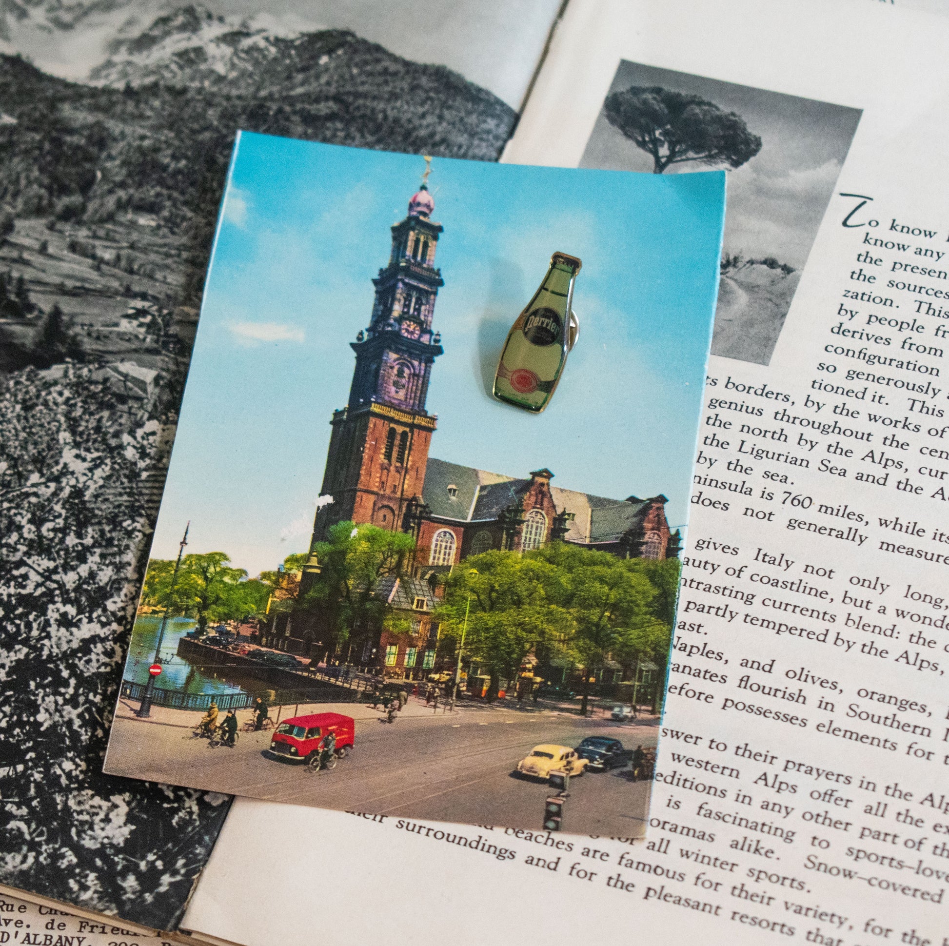 Add a splash of history and sparkle to your style with the Vintage Perrier Pin!
